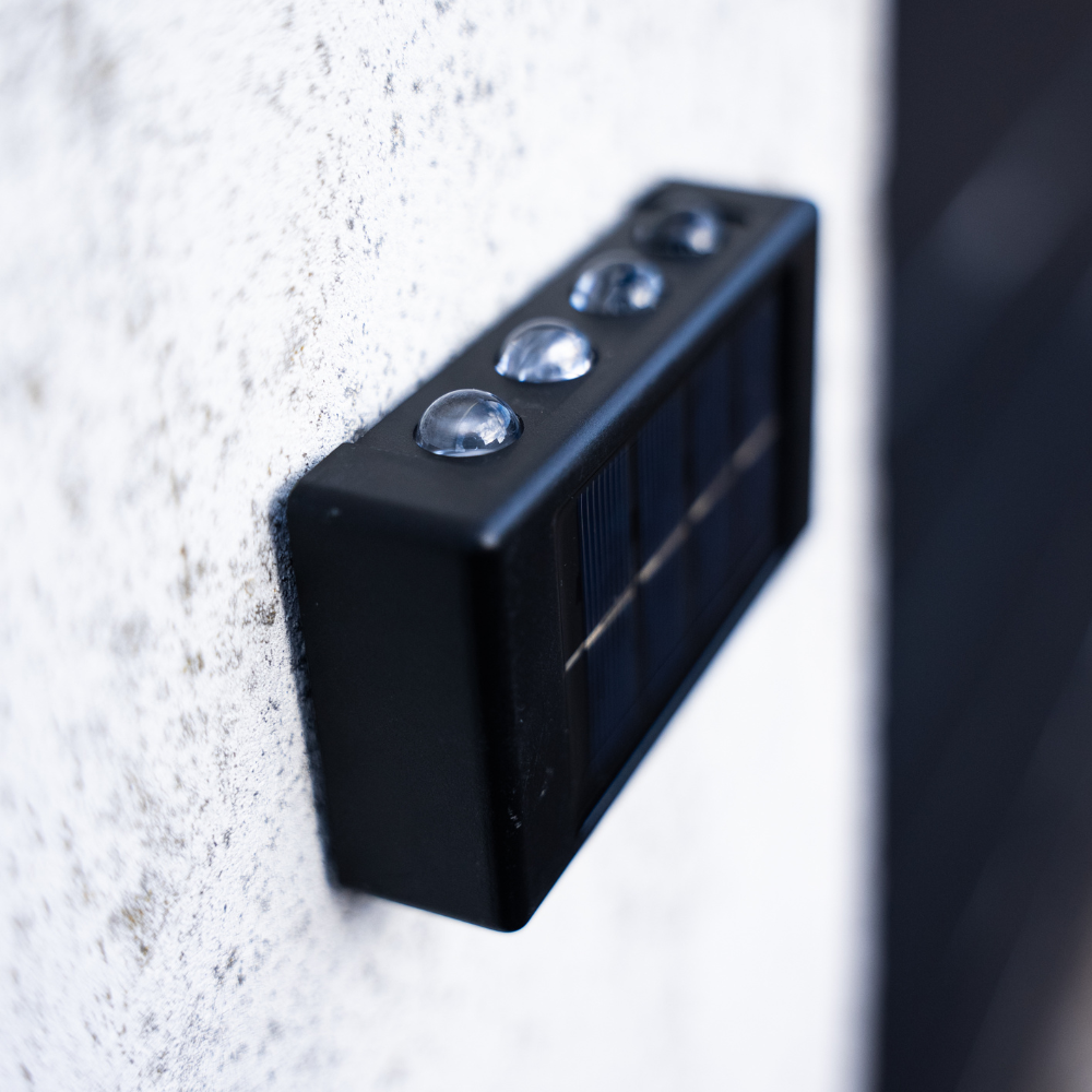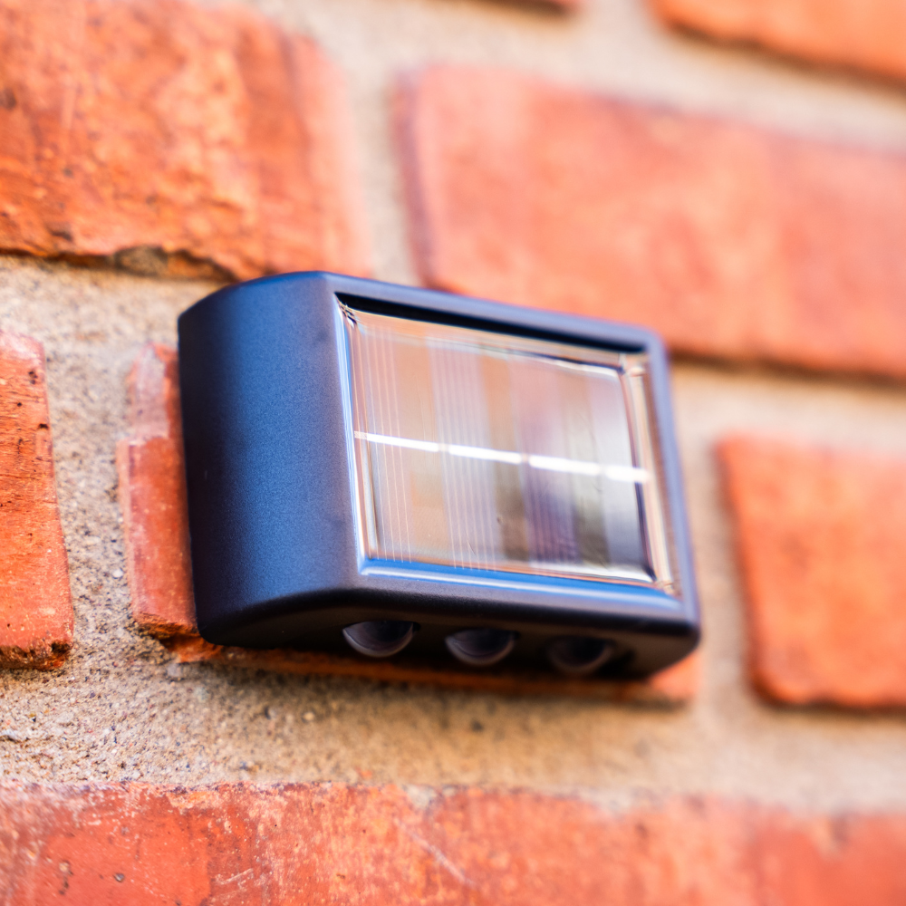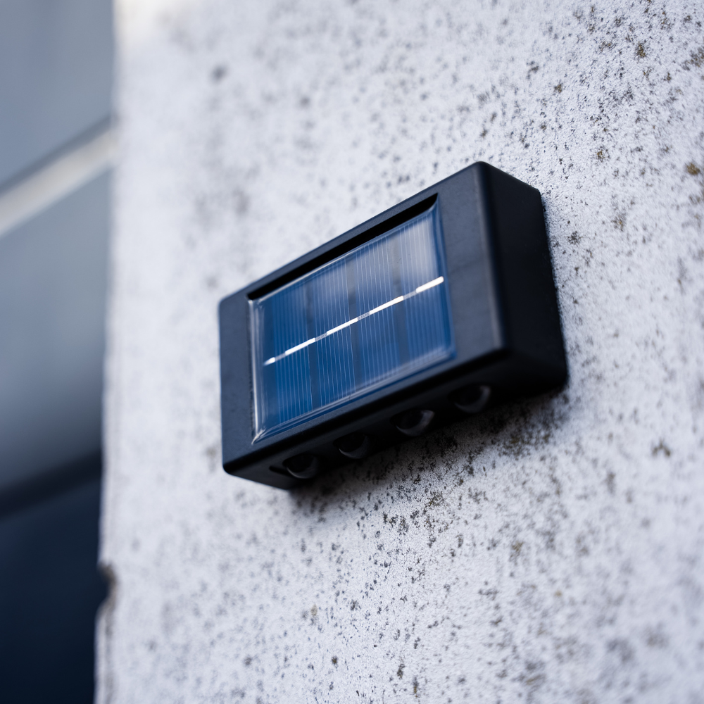 Solarsun væglampen lader op i løbet af dagen og tænder selv ved aftentid. Perfekt til at skabe hyggelys i haven, på altanen eller ved carporten – uden at røre en kontakt.
